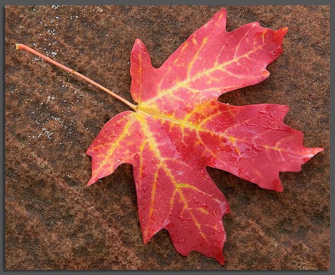 Red Leaf on Sandstone at Zion National Park, Utah